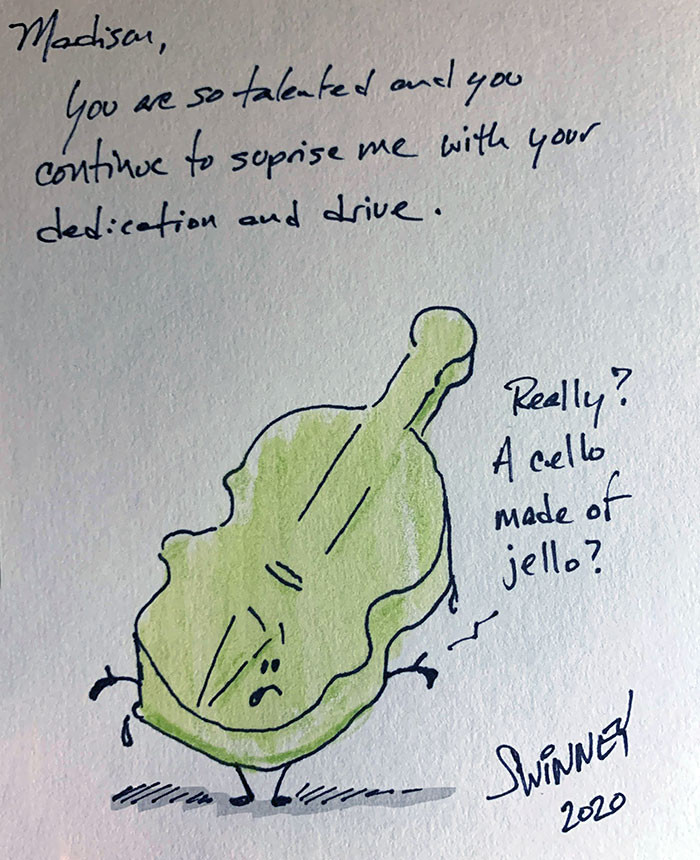 "My Orchestra Teacher Made My Class Personalized Thanksgiving Cards. He Drew The Pictures In His Own Style, Out Of A Bunch Of Different Thanksgiving Foods"